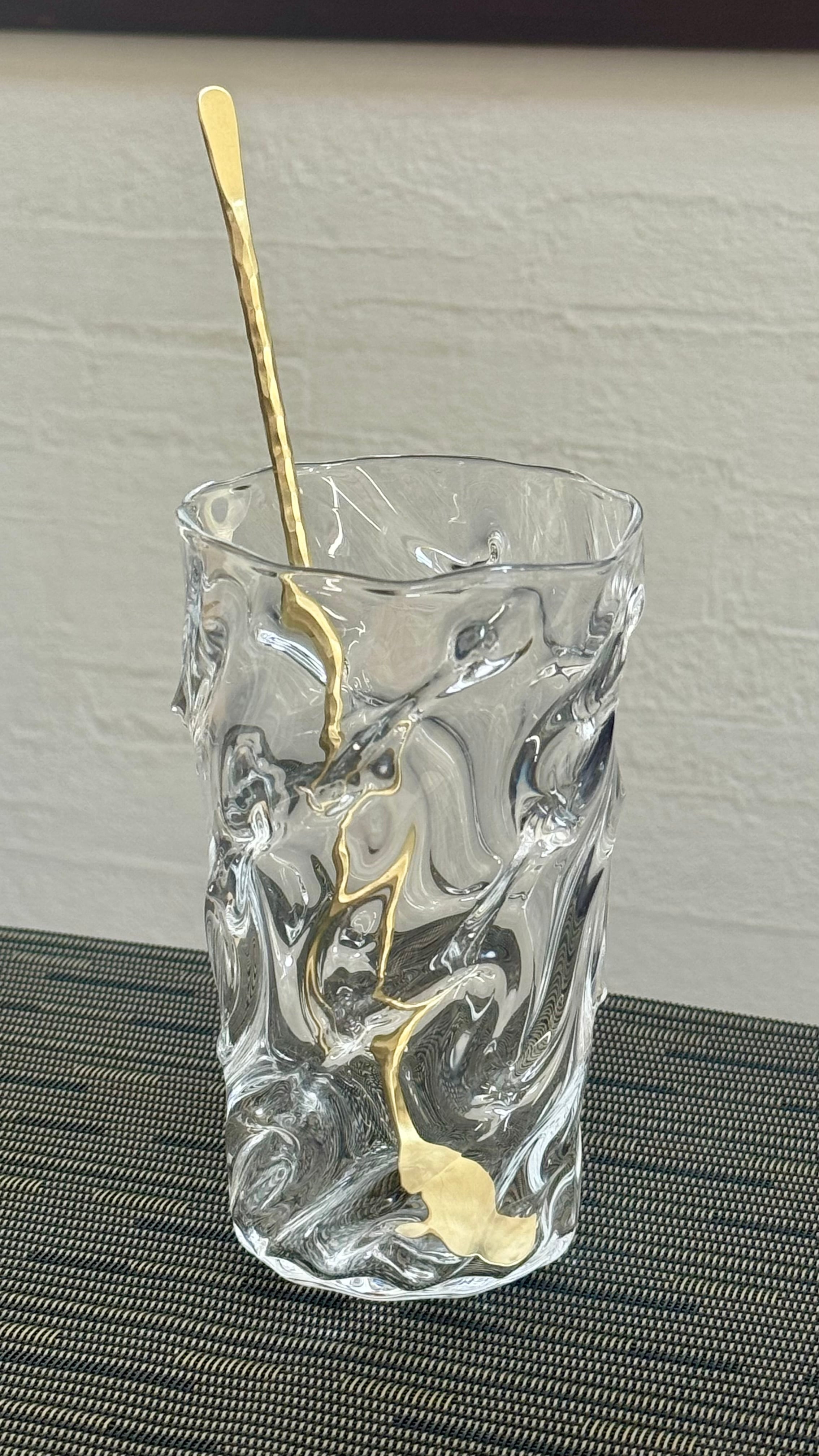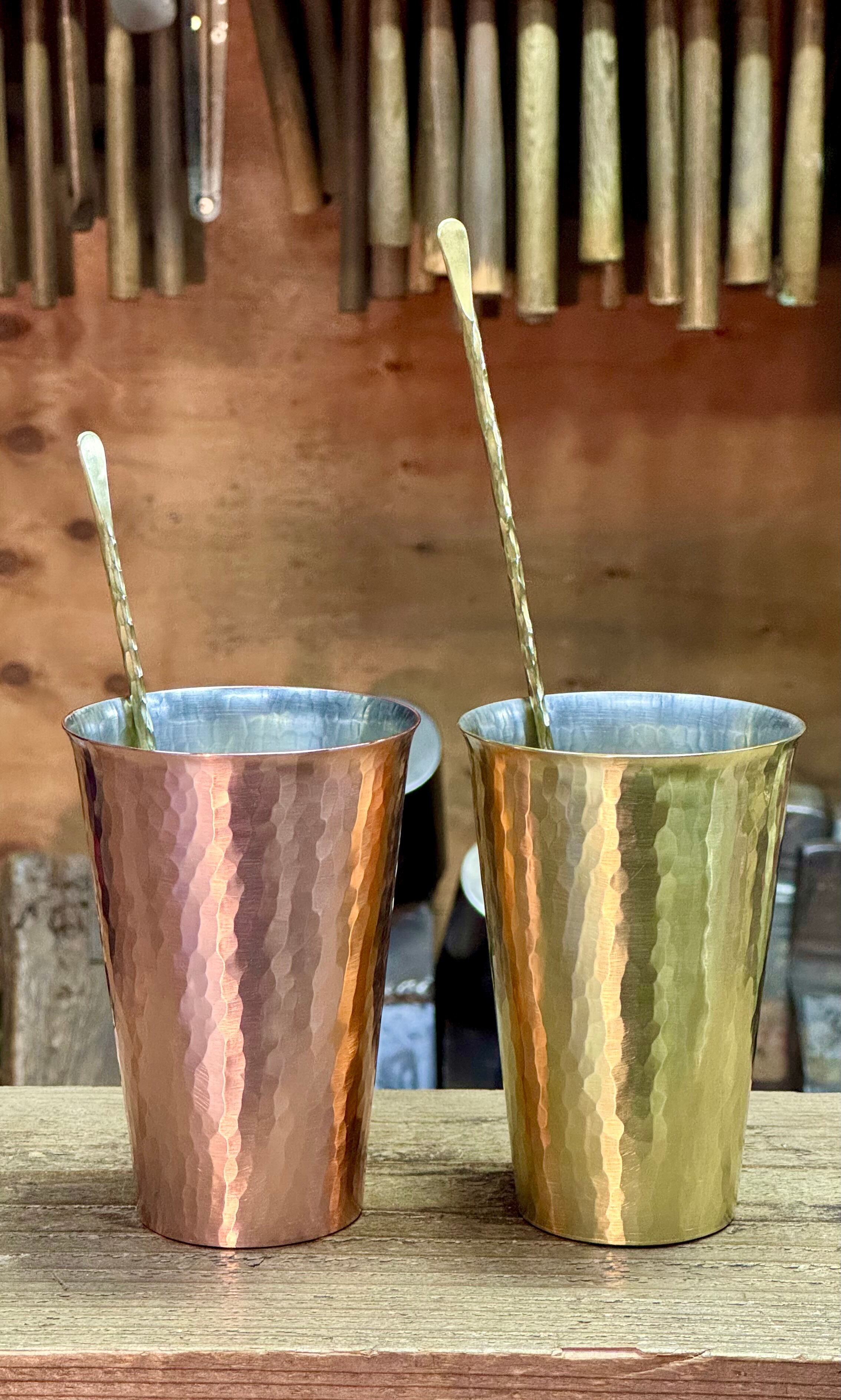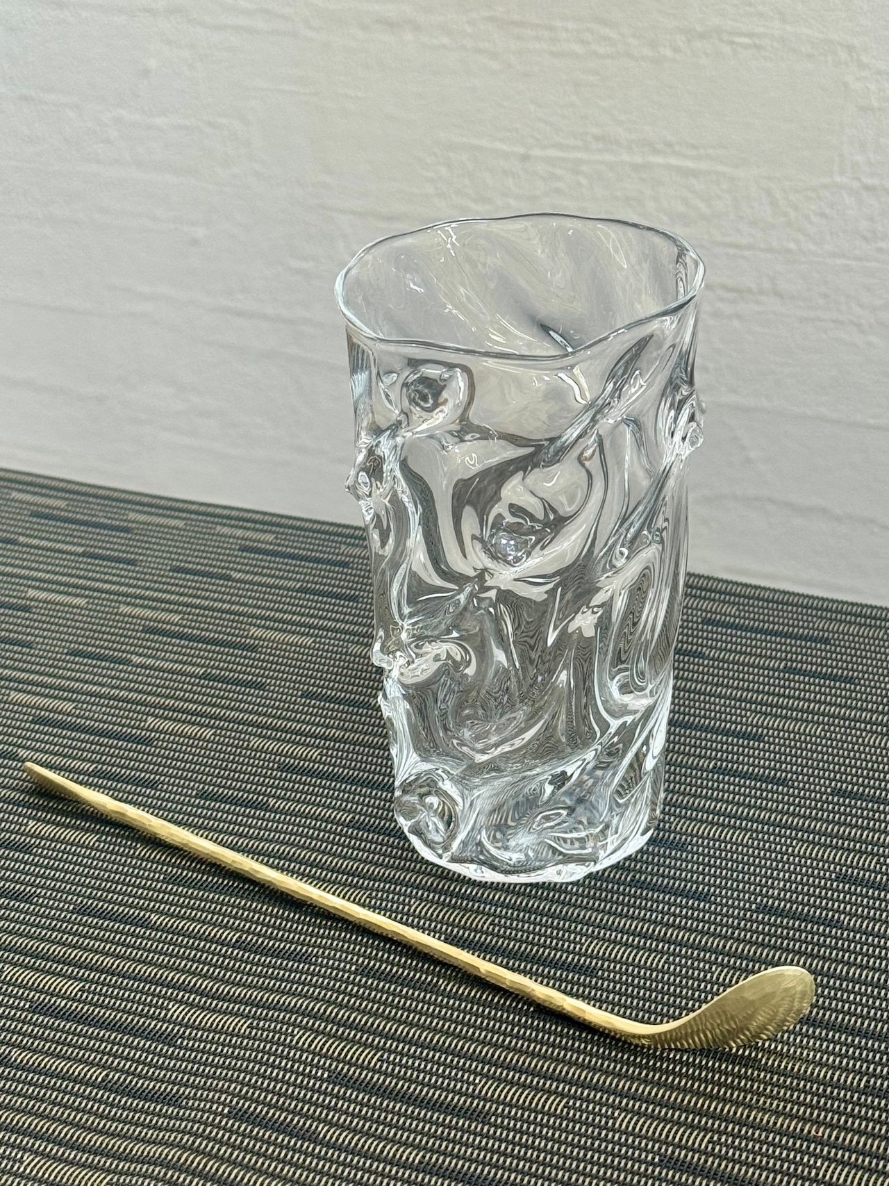 鍛金技法により、1本の真鍮丸棒から、ひとつひとつ手作業にて制作いたしました製品となります。ハイボールを作る際に炭酸が抜けにくい様、炭酸水をゆっくり注ぎ、氷を優しく上下することで混ぜる事が出来る角度にスプーンを調整し、仕上げました製品となります。インドア、アウトドなどでいつもとは違う特別なハイボールをお楽しみ下さいませ。
